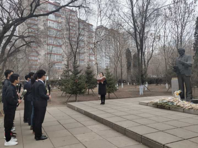 细雨蒙蒙,四月初的哈尔滨夹杂着些许寒冷,为庄严的马祖光院士雕塑更添一丝肃穆。中午十二点半,里番 团委副书记修文心,里番 研究生会,里番 团委学生会全体成员在马祖光院士雕塑前静驻,学生会主席刘青鑫带领大家追忆了马祖光院士一生的光辉事迹和杰出贡献。马祖光院士在科研教育第一线坚持奋斗了一生,为我国的科研教育事业殚精竭虑,鞠躬尽瘁。培养了大批优秀的科技人才、创造了众多的科技创新发明,创立了世界一流的科研机构,为学校,为国家,留下了不可磨灭的伟大贡献。更重要的是,马祖光院士始终对待学生认真耐心,对待工作一丝不苟,他克己奉公,淡泊名利的崇高美德和甘为人梯、谦逊质朴的无私襟怀更是留给我们的宝贵精神财富!这种伟大的人格力量感人至深,催人奋进!