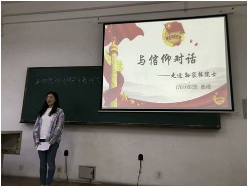 本次活动分为了3个部分。首先,由团支书陈浩林向大家介绍“五四运动”的背景,经过以及重要的历史意义。接着,由邢璟同学向大家展示了题为“与信仰对话——走近孙家栋院士”的精彩微团课。最后,大家一起观看了由陈道明主演,于“五四运动”80周年之际上映的电影《我的1919》。