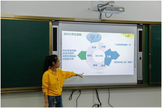 在主持人曹明达同学的介绍之下,参赛选手依次上台进行微团课展示。16名参赛选手的主题内容各不相同,有的同学带领大家追忆过去,纪念五四运动;有的同学娓娓讲述,展现榜样力量;还有的同学刨析当代大学生精神世界,为大家指点方向……同学们激昂澎湃的讲解,深刻独到的见解,形式多样的表现形式,吸引了评委老师和现场观众的阵阵掌声。