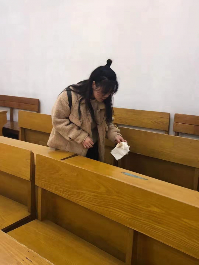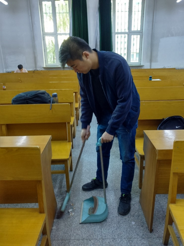 开展党员先锋行动是加强党组织建设的需要,是党的组织建设和党内活动的重要内容,也是预备党员党内培养的重要一环。通过党员先锋岗、党员示范岗、党员责任区,设岗定责、承诺践诺等,组织党员亮身份、做表率。里番 18S0104 硕士生党支部于2019年11月2日中午12点,在里番 诚意楼开展了“干净课堂”主题实践活动,本次活动由党支部书记刘国栋组织支部预备党员参加,一同起参加的还有其他硕士支部的预备党员,本次活动由刘国栋和张子文同志记录。