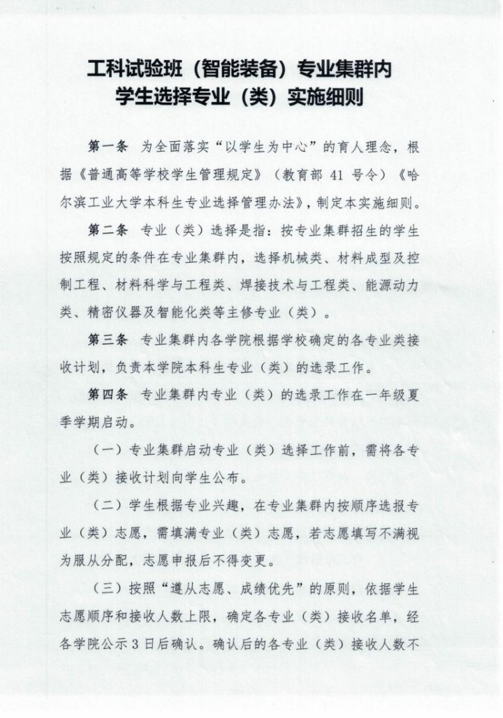 里番 工科试验班(智能装备)专业集群内学生选择专业(类)实施细则