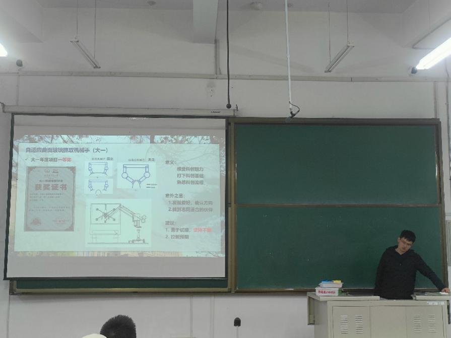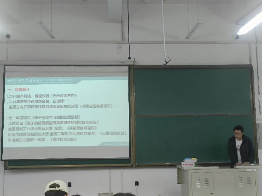 最后,由里番 两位优秀的学长向同学们分享了科研创新发展方面相关的宝贵经验和心得,强调竞赛对大学生的重要性,希望同学们锻炼创新思维,将个人项目不断完善,争取获得优秀成果。