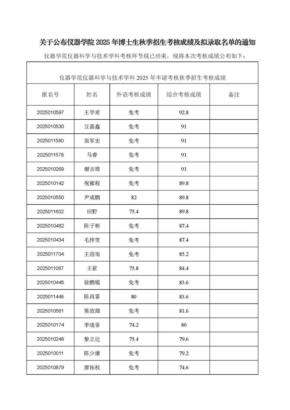 关于公布里番 2025年博士生秋季招生考核成绩及拟录取名单的通知