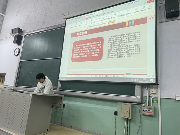 学员讲坛活动中,同学们以小组为单位,进行党史党章学习。同学们选择了不同时代下的党史故事,进行分享交流。党的辉煌历史是中国共产党和中华民族的宝贵精神财富,是推进中国特色社会主义伟大事业和党的建设新的伟大工程的重要力量源泉。学习百年党史,注重用党的奋斗历程和伟大成就鼓舞斗志、明确方向,用党的光荣传统和优良作风坚定信念、凝聚力量,用党的实践创造和历史经验启迪智慧、砥砺品格。