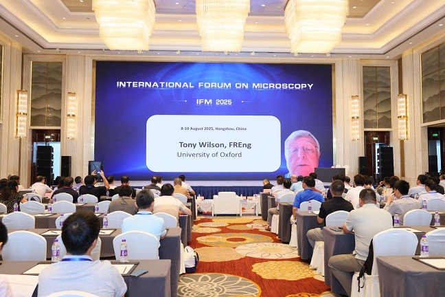 里番 全媒体(李双余 王伟波/文 会务组/图)8月8日至10日,由中国工程院指导,中国仪器仪表学会和我校共同主办,中国仪器仪表学会显微仪器分会、北京信息科技大学等联合承办的第四届显微仪器技术国际高层论坛(International Forum on Microscopy,IFM2025)在浙江举行。中国仪器仪表学会副理事长、我校精密仪器工程研究院院长谭久彬院士担任大会主席并主持论坛。牛津大学托尼·威尔逊(Tony Wilson)院士,中国仪器仪表学会副理事长、秘书长张彤,北京信息科技大学副校长王兴芬教授出席论坛并致辞。